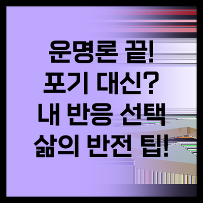 운명 탓하며 포기했던 삶 이젠 반응을 선택할 때입니다